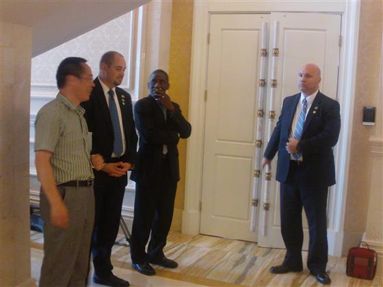 图示:全国工商联执委万祥军和美国第39任总统吉米·卡特随从交流