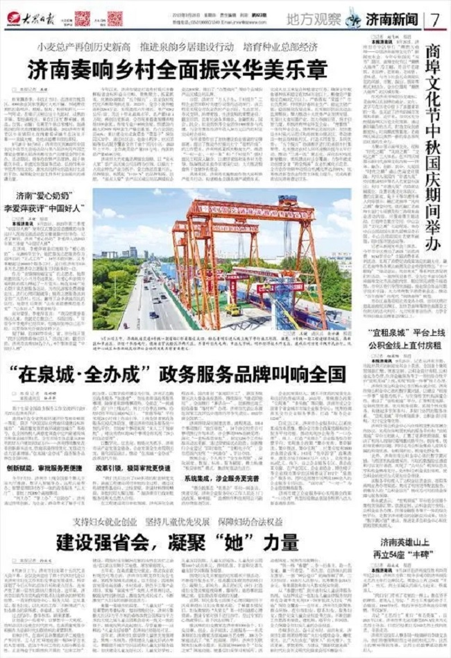 第十七届全国政务服务工作交流研讨会9月27日在济南召开。连续4年在全省营商环境评价考核中蝉联一等奖,获评“中国国际化营商环境建设标杆城市”“高质量发展营商环境最佳城市”等称号,在全国纳税人满意度调查中位列副省级城市和省会城市第1名,全市市场主体总量从2016年的57万户增加到152万户……济南持续激发改革创新源头活水,营商环境持续优化,发展动力活力显著增强,“在泉城·全办成”政务服务品牌在全国叫响。