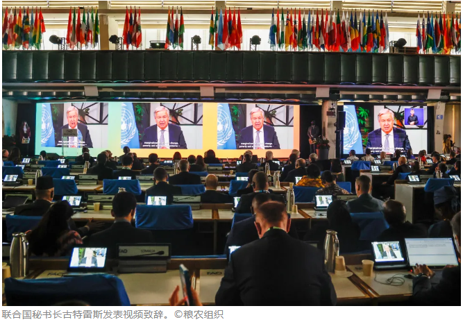 屈冬玉开幕致辞中强调,食物是一项基本人权。然而,根据世界粮食计划署等国际组织发布的数据显示,2023年仍有约7.33亿人面临饥饿,相当于全球每11人中就有1人食不果腹。我呼吁所有人重申承诺,建立更高效、更包容、更具韧性和更可持续的农业粮食系统以滋养世界。我们要知道,没有和平就没有粮食安全,和平是粮食安全的前提条件,获得食物的权利是一项基本人权。